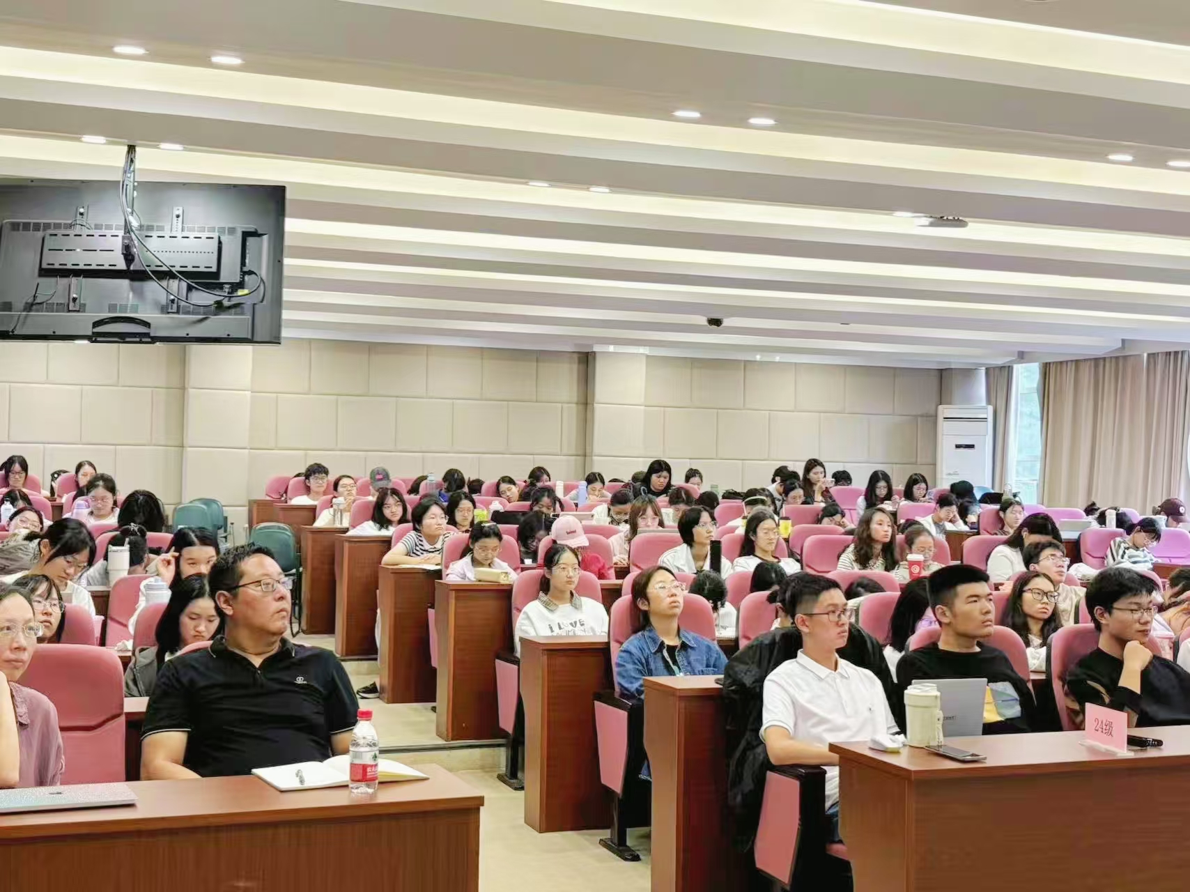 楼108报告厅开讲。杭州电子科技大学、之江实验室高级研究员王金鹏老师受邀作题为“从AIGC到超级个体——AI时代的黄金机遇”的讲座。文华各年级学生参加此次讲座。