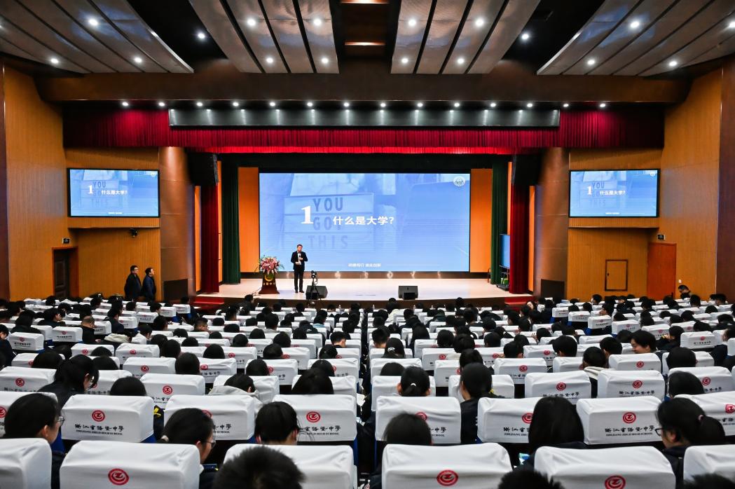 院长魏江作为“开学第一课”首期开讲嘉宾专程赴诸暨中学与学子面对面交流,作题为《大学之要旨:培养“完全之人物”》的专题讲座。诸暨中学党委书记、校长吴科军,副校长赵文浪、王晓峰等校领导和800余名师生聆听讲座。