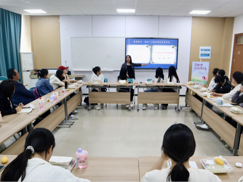 吴老师以余光中《等你,在雨中》的现代诗意象分析为切入点,剖析现代诗中“莲花”“雨”等意象的象征意义,引领同学们放缓时间节奏,沉浸于文学的诗意氛围。吴老师特别强调:“文学的魅力在于开放性 —— 逻辑自洽的个性化解读远比标准答案更具价值。”在解读《游园惊梦》中杜丽娘的人物形象时,吴老师进一步指出:“人性的复杂远超文学的描摹。”她提出“文学是理性意识与非理性意识的复合体”,并阐释文学多元性的根源在于人类情感与思想的多维度交织,引发在场学生对文学与人性关系的深入思考。