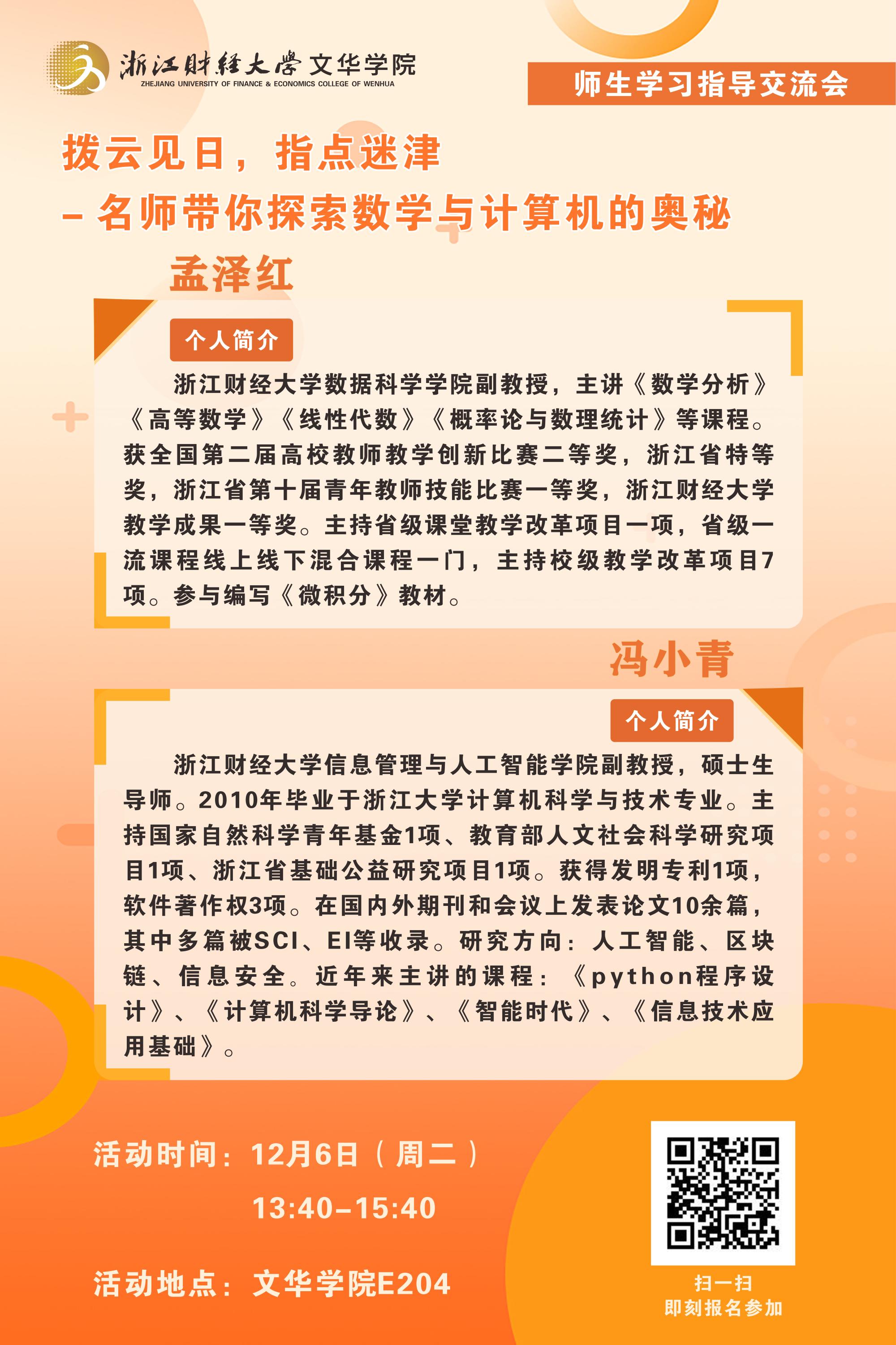 请感兴趣的同学于2022年12月2日16:30之前扫码报名,报名成功后将于12月5日16:00前短信告知。